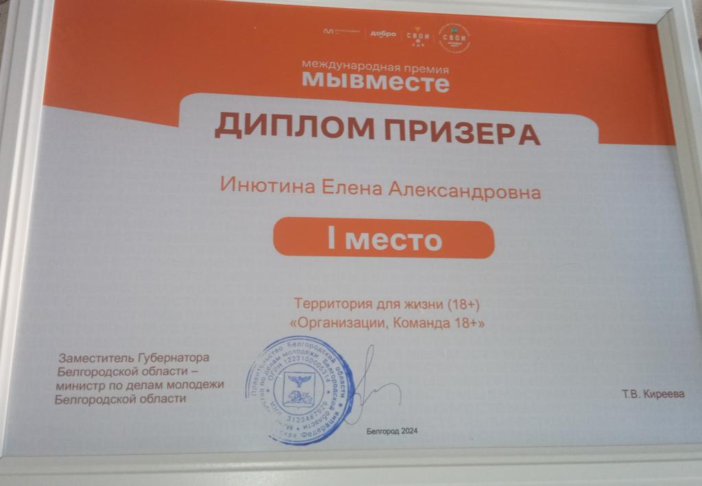 Поздравляем руководителя АНО "БМП" Инютину Елену Александровну, которая заняла 1 место, участвуя в номинации "Территория для жизни".